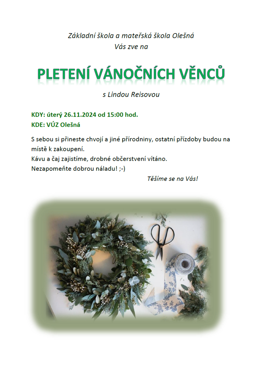 Úvod > Základní škola > Aktuality ZŠ > Přijďte si vytvořit vánoční věnec